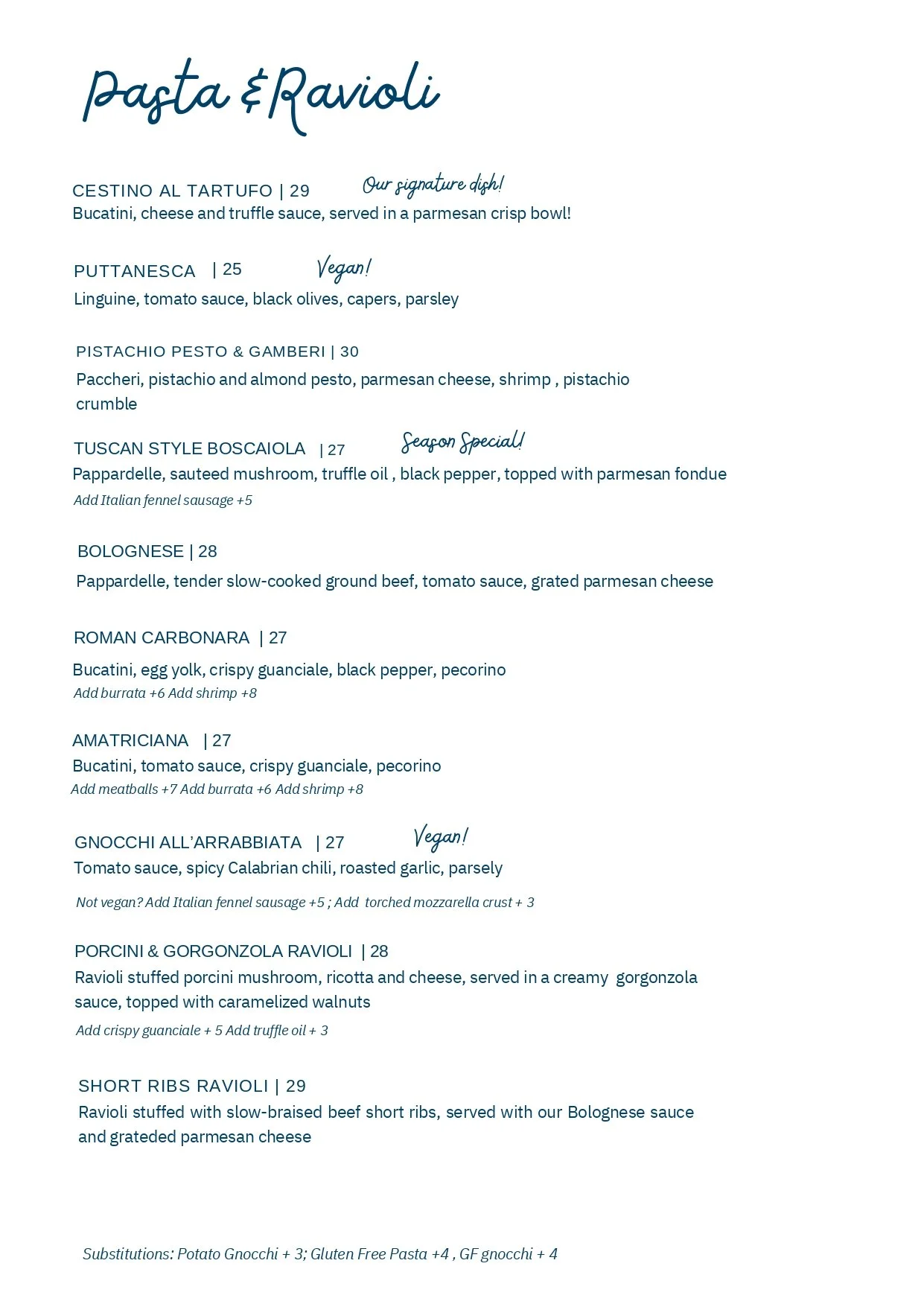 Click Here for our catering and private dinner menu